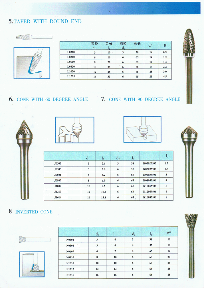 1. Various shapes of Carbide Burrs are available